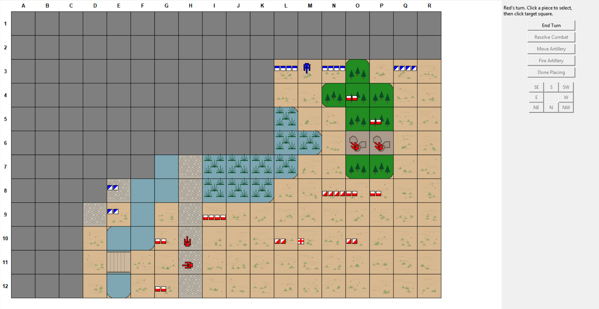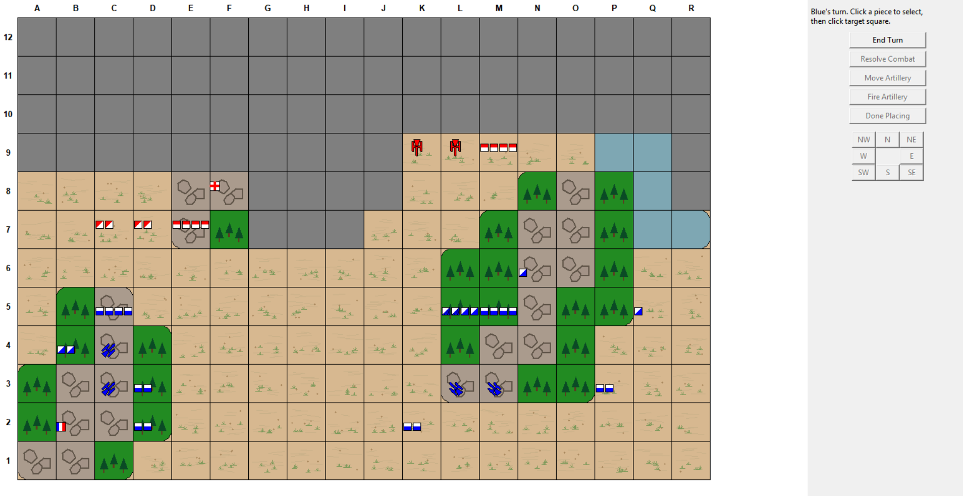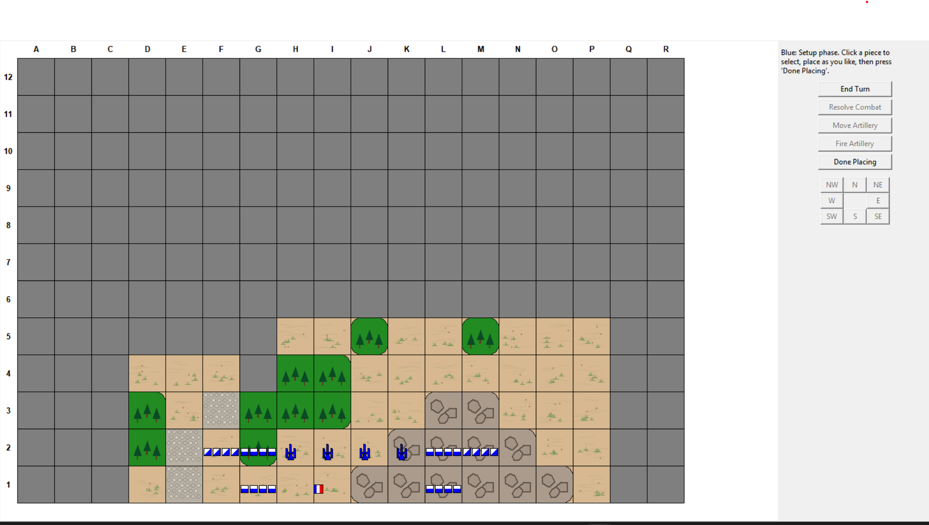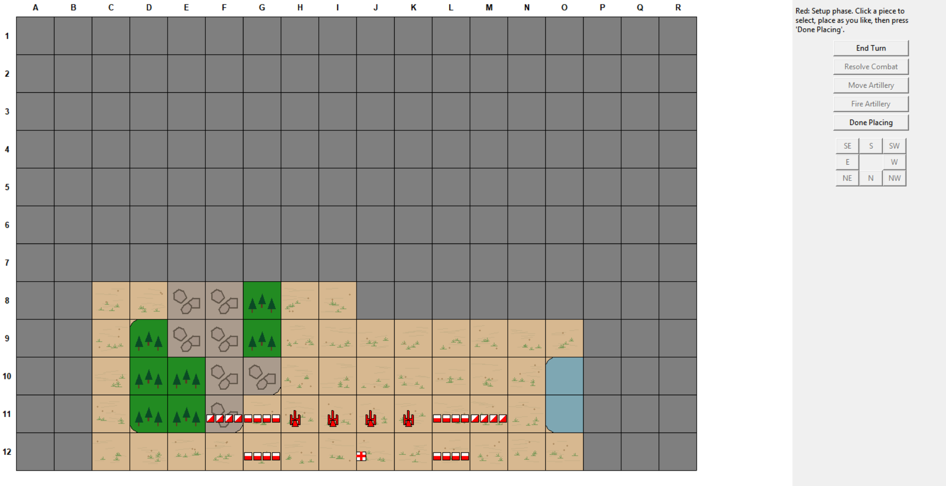Setup phase — place your army however you like in your first two rows before the game begins.